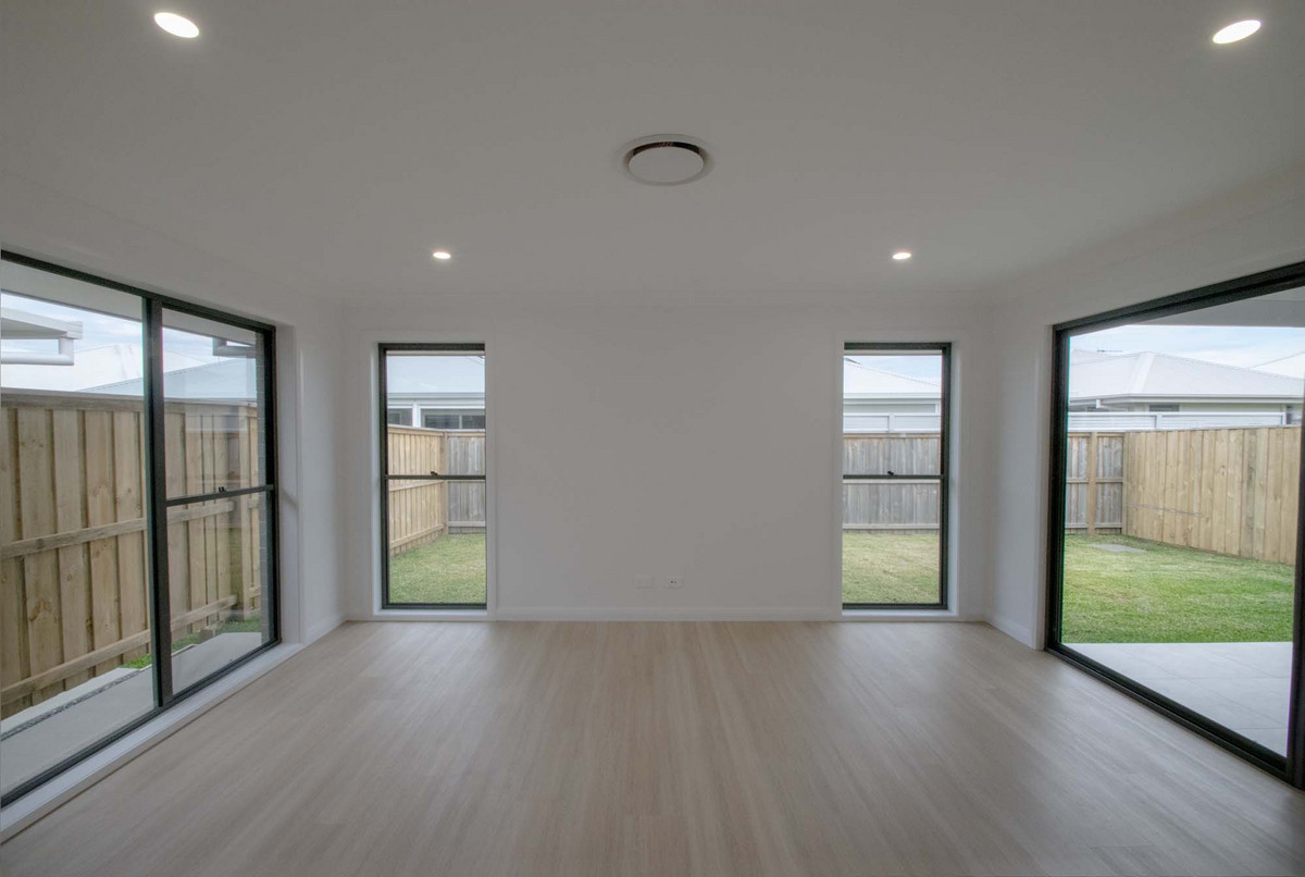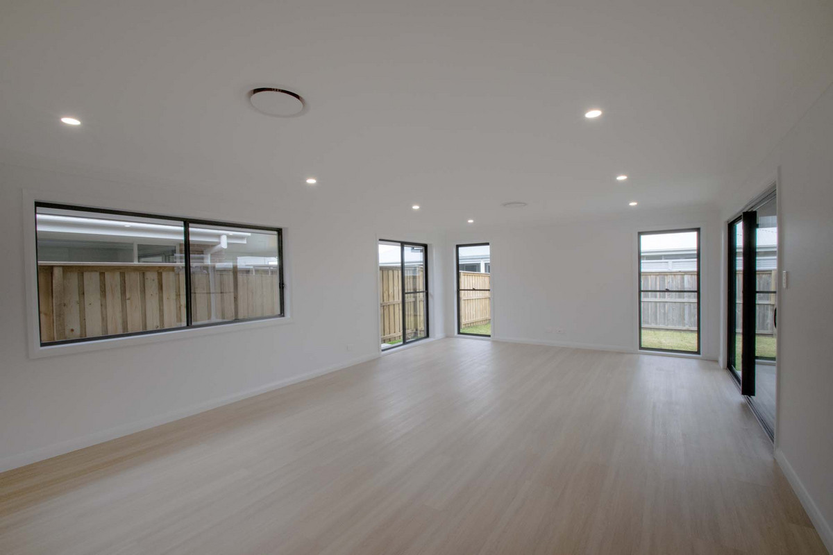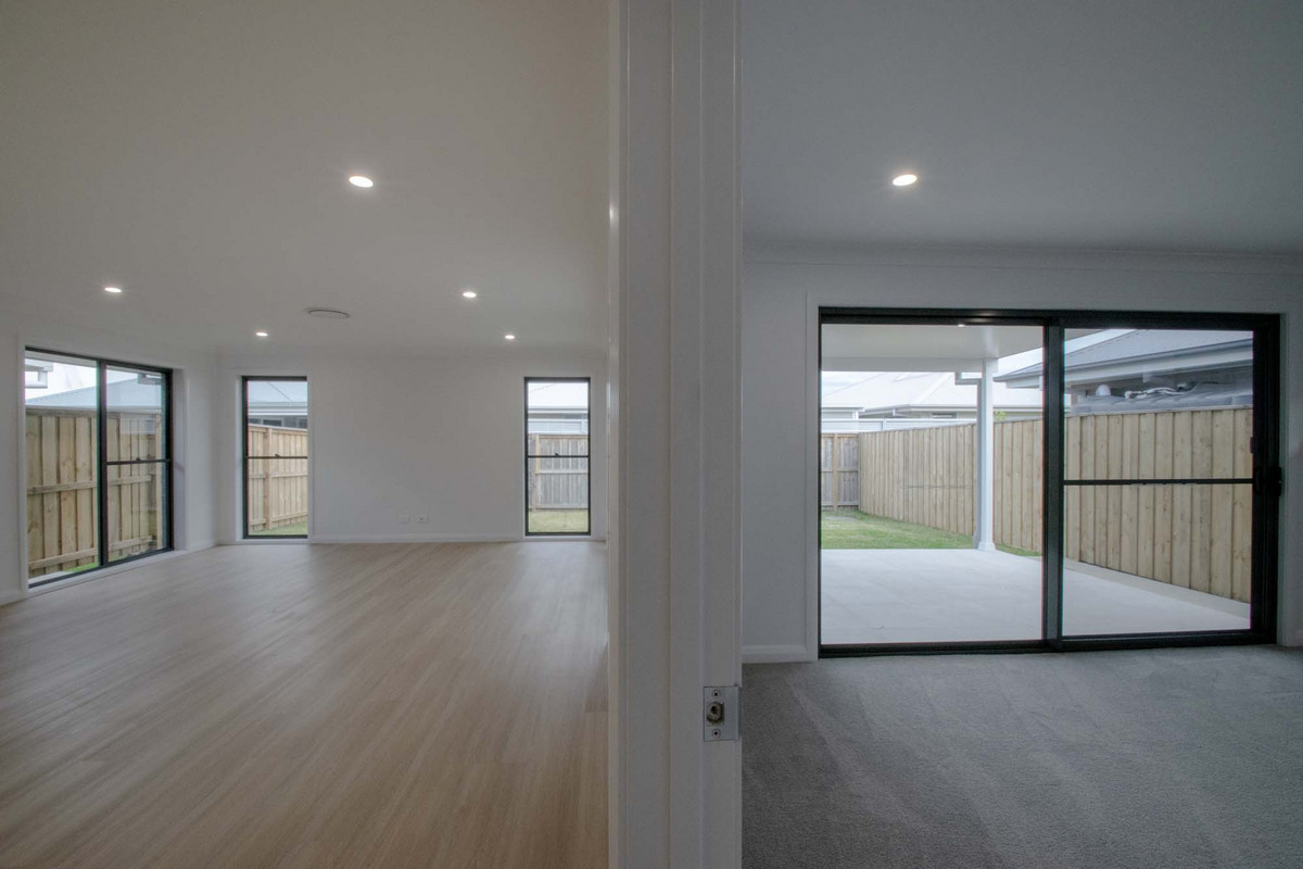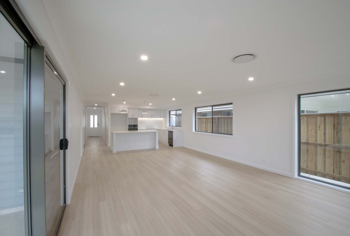 The other half of the home is designed to integrate the large open-plan kitchen (including island bench) with the enormous kitchen and dining areas, ideal for family gatherings and entertaining with friends. An expansive living area opens onto the outdoor alfresco terrace, with large sliding doors for seamless indoor/outdoor entertaining.