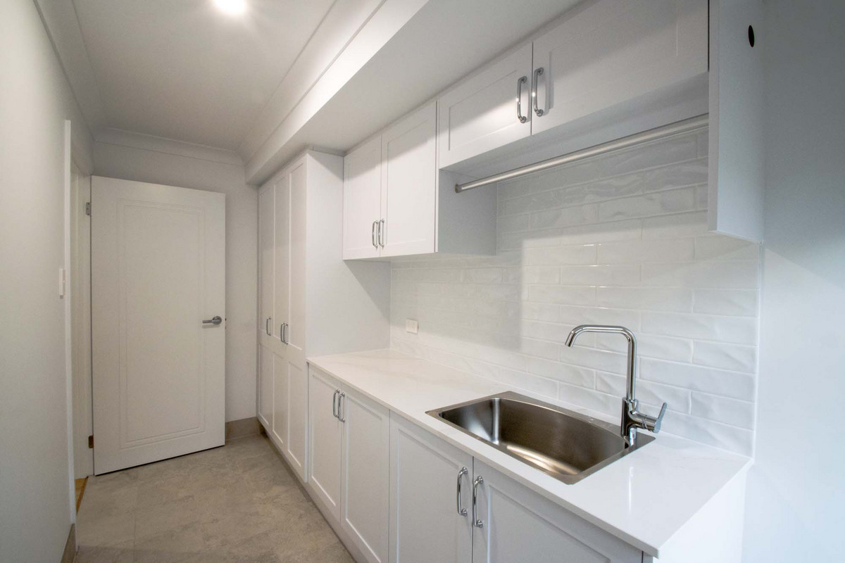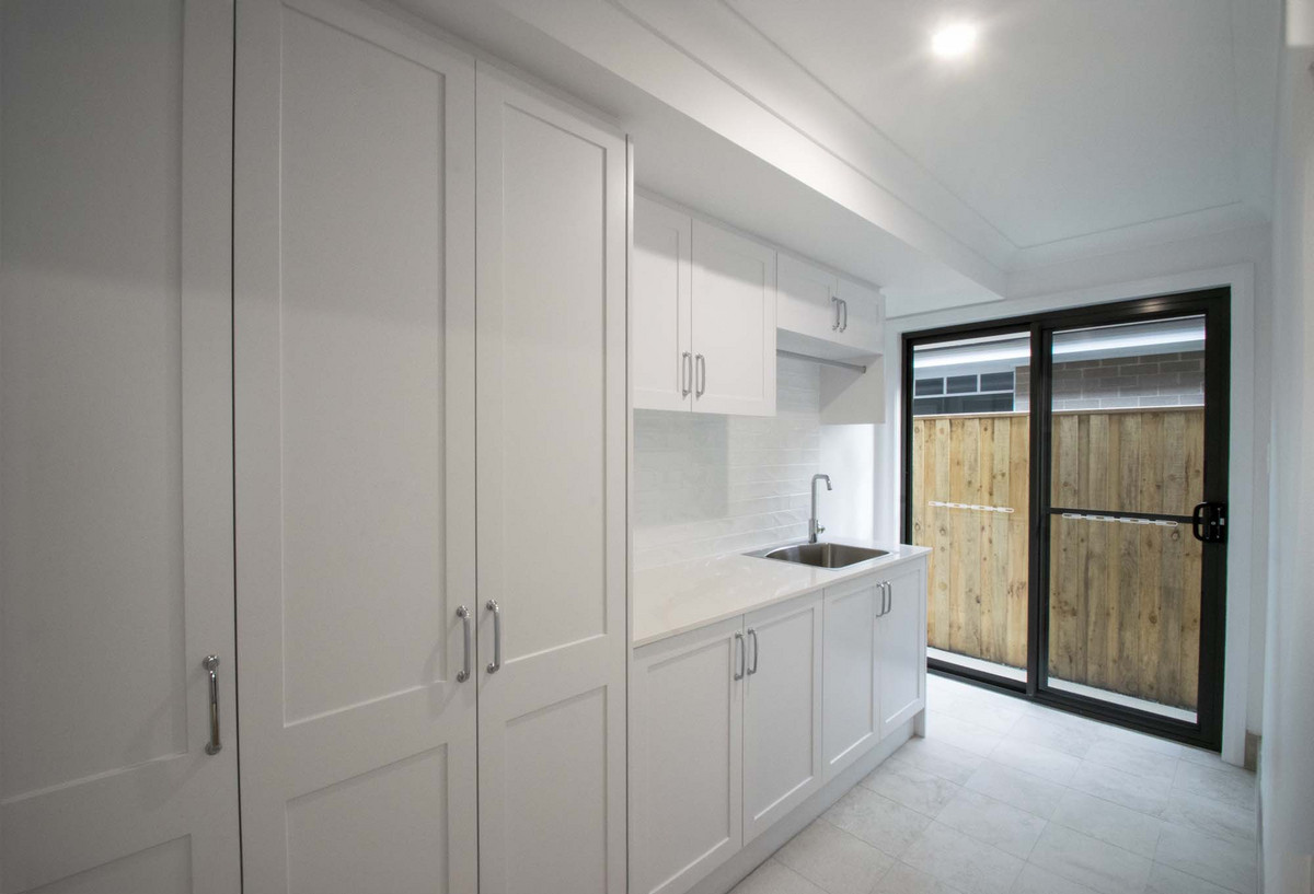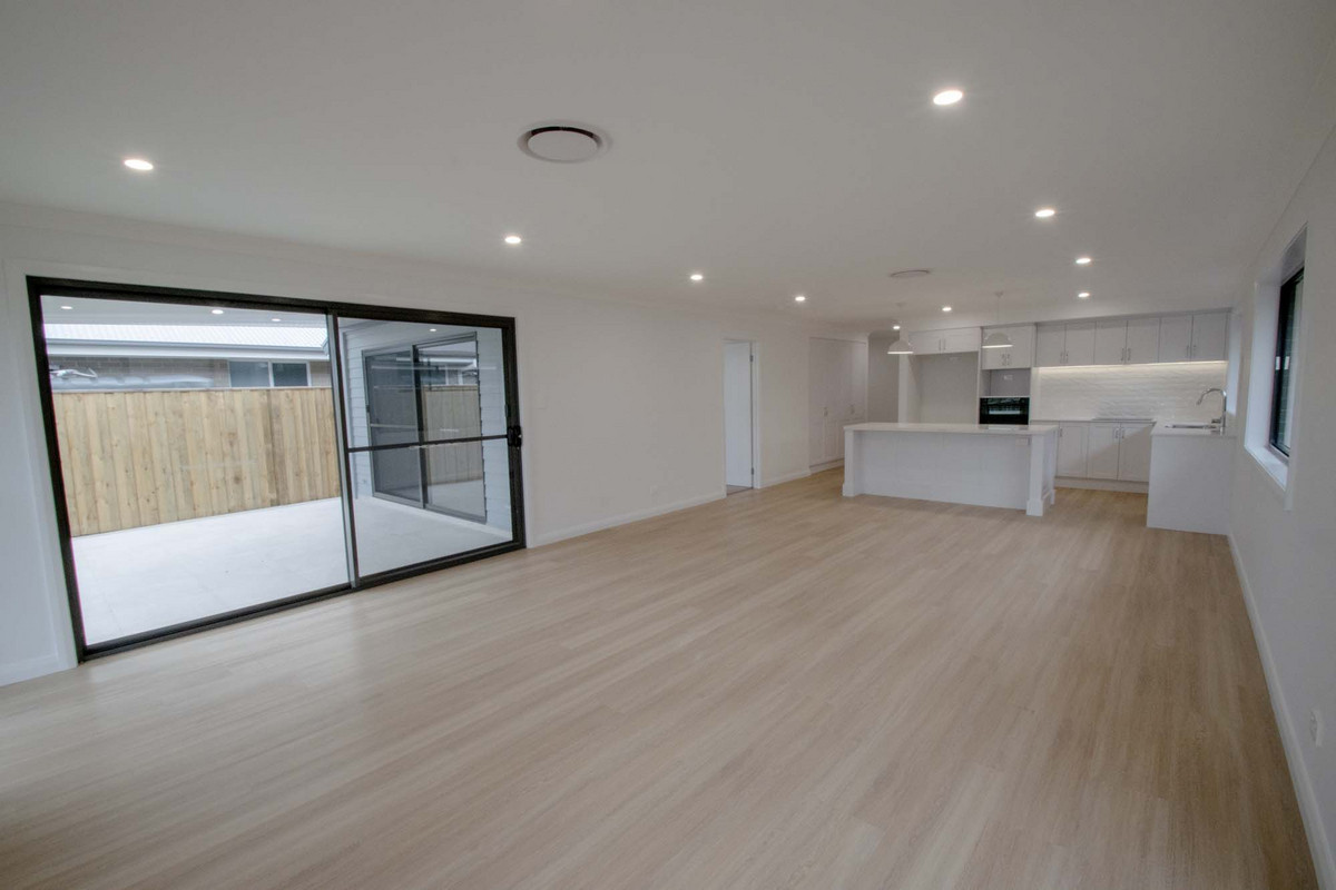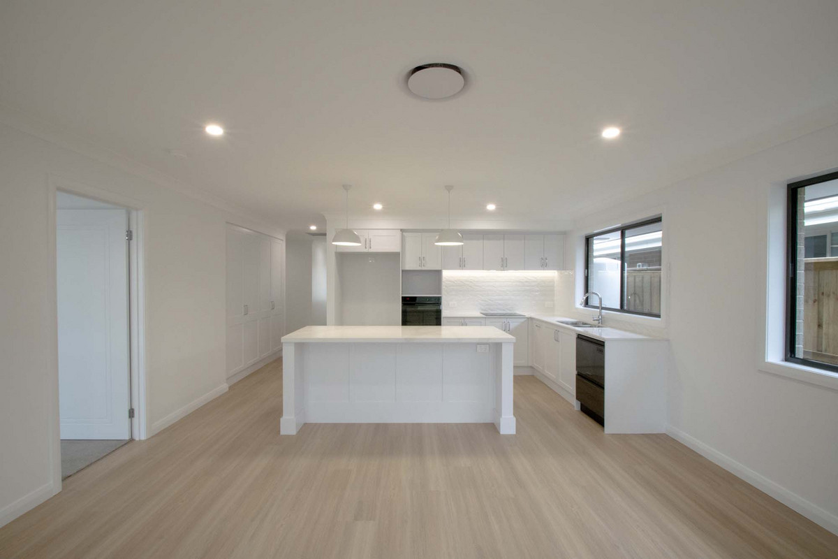 The other half of the home is designed to integrate the large open-plan kitchen (including island bench) with the enormous kitchen and dining areas, ideal for family gatherings and entertaining with friends. An expansive living area opens onto the outdoor alfresco terrace, with large sliding doors for seamless indoor/outdoor entertaining.