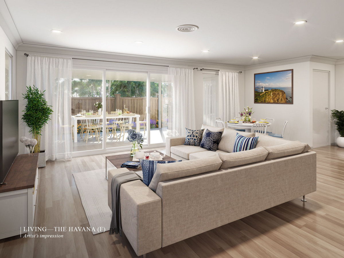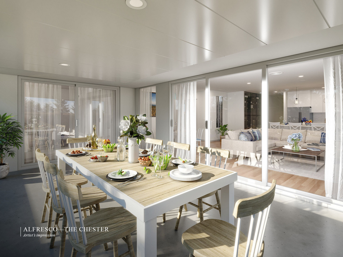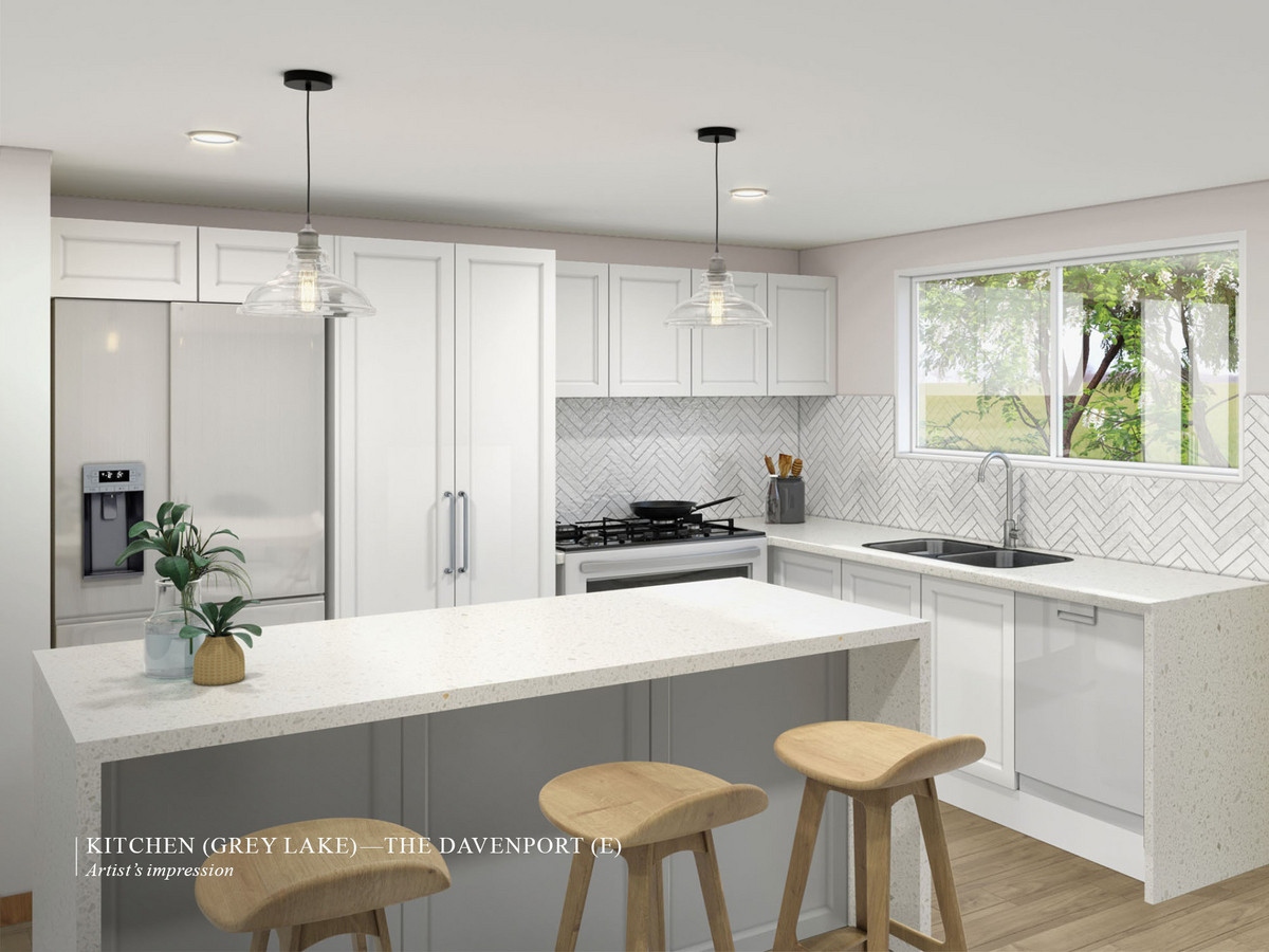With dedicated outdoor spaces for relaxation, intelligently zoned communal spaces and private masters’ quarters, as well as an adaptable third bedroom/rumpus or home office, the Imperial design is dynamic, and flexible to your needs and lifestyle. One of the home’s outstanding highlights is the open-plan kitchen with an island bench, plus a huge walk-in pantry — a dream for passionate home cooks, and ideal for entertaining. This overlooks the large, light-filled dining and living areas, which open onto the outdoor alfresco terrace, with room for a barbecue and seating.