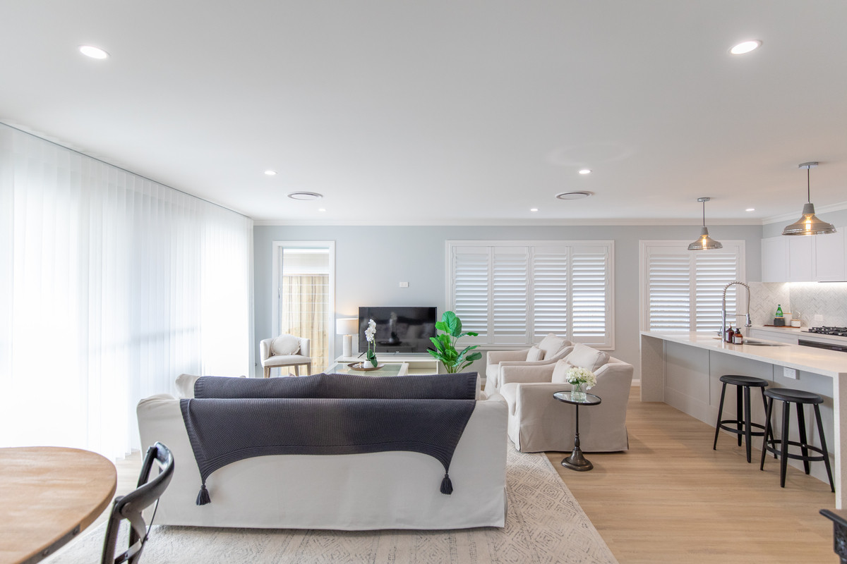 The contemporary 3-bedroom design offers light and airy open-plan living and dining areas, including a kitchen with double sink, and an extended island benchtop. Living and dining areas are generously proportioned, as are the second and third bedrooms with separate bathroom. Positioned at the rear of the property to maximise privacy and minimise noise, the master bedroom features a private ensuite, plus sliding doors that open onto the enormous outdoor alfresco terrace, covered for year-round use.