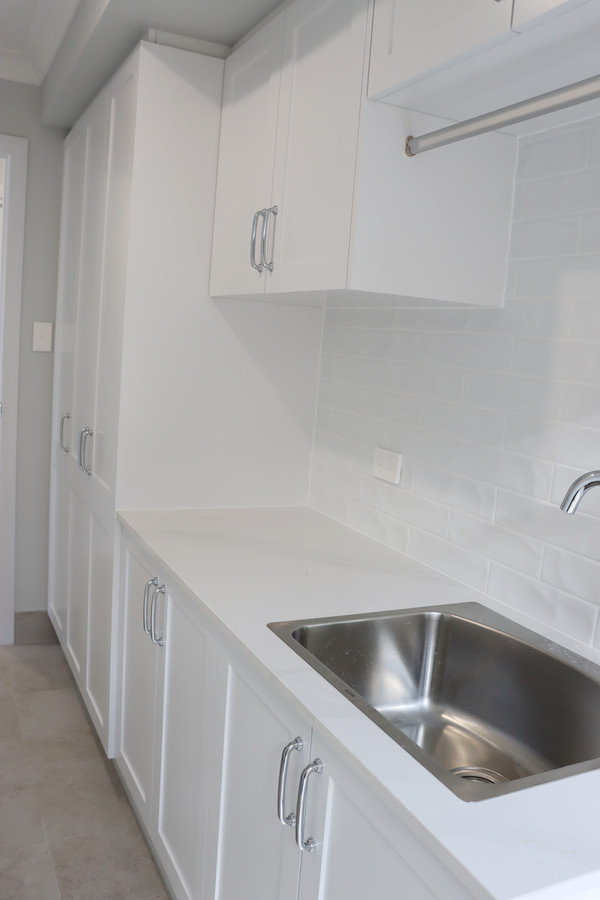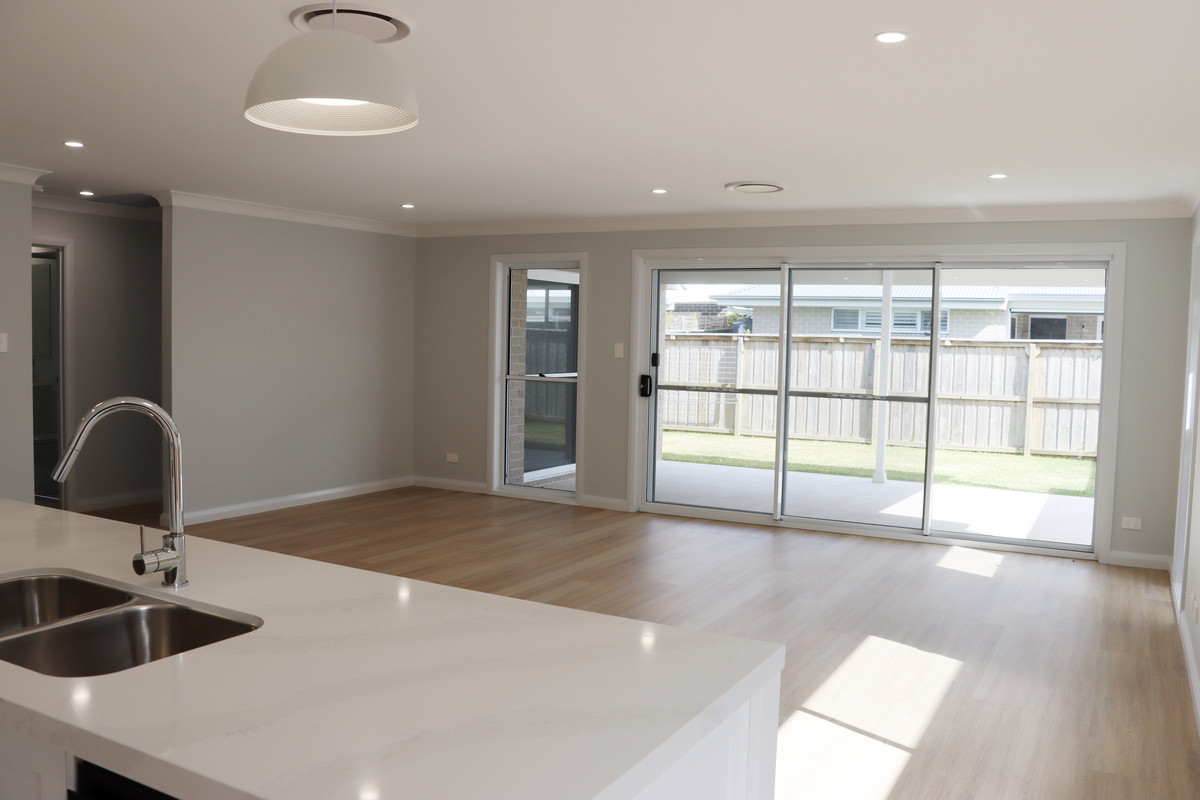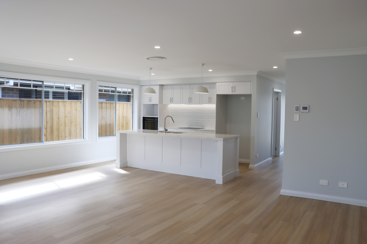 The oversized, open-plan kitchen, living and dining rooms are cleverly zoned away from large bedrooms, separated by a full-size laundry, linen closet and bathroom. The kitchen features a long island bench with ample space for bar seating, overlooking the living and dining areas.